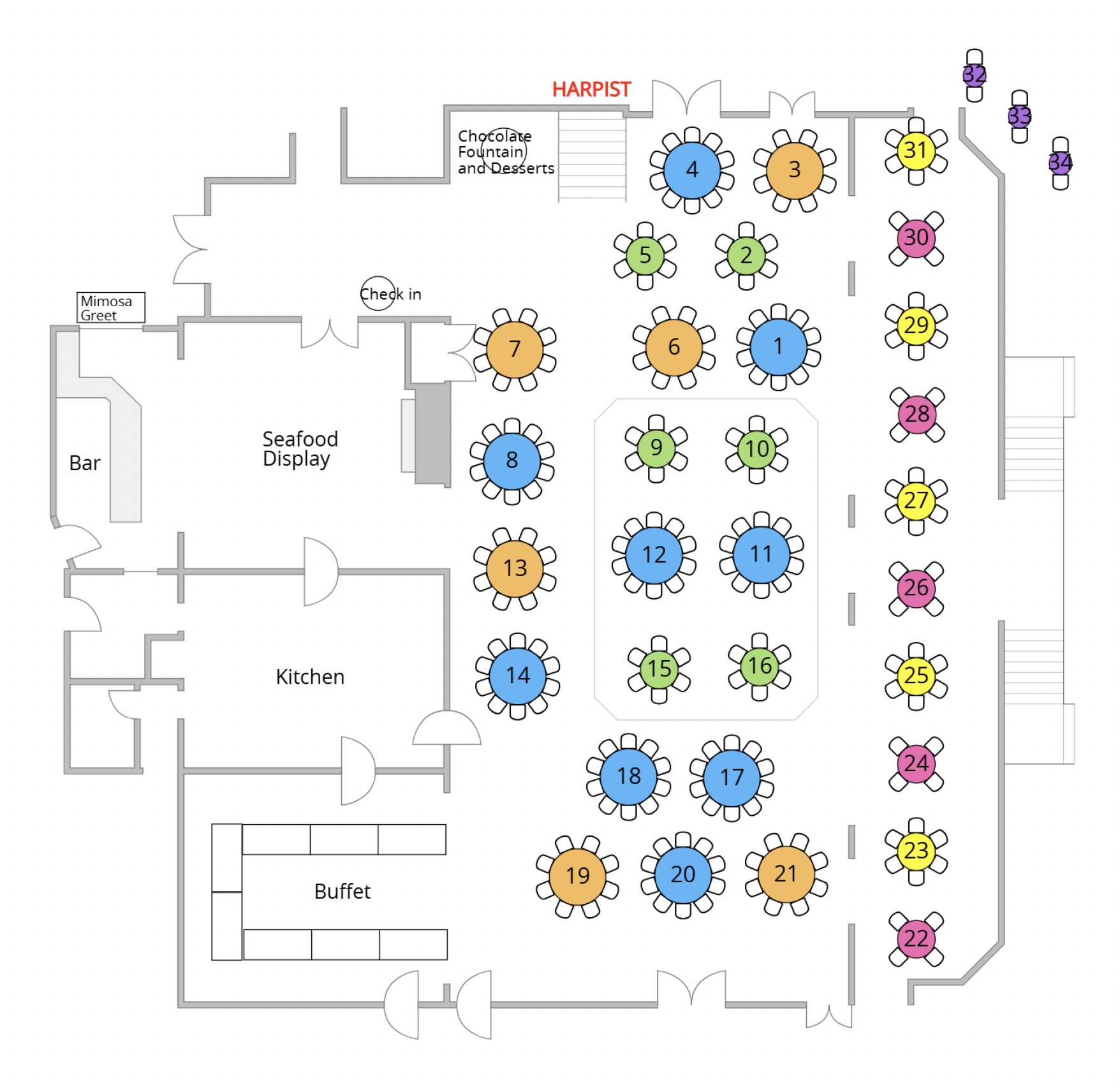 •  Purple  – Small – seats up to 2 guests. Pricing $180.00
